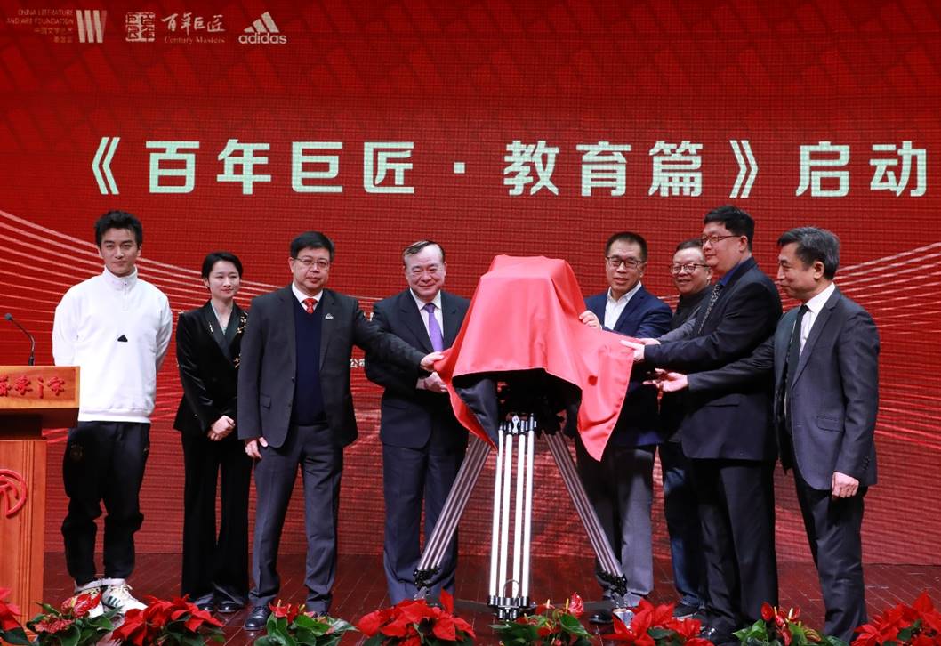 中國文聯(lián)黨組成員、副主席俞峰,國家大劇院院長王寧,中國教育電視臺黨委書記、臺長袁小平,中國舞蹈家協(xié)會主席、中國文學藝術基金會副理事長馮雙白,阿迪達斯大中華區(qū)政府關系副總裁王若海,奧運會冠軍吳靜鈺,《百年巨匠》出品人、總策劃楊京島,中國文藝志愿者協(xié)會理事、青年演員陳曉共同啟動《百年巨匠·教育篇》。