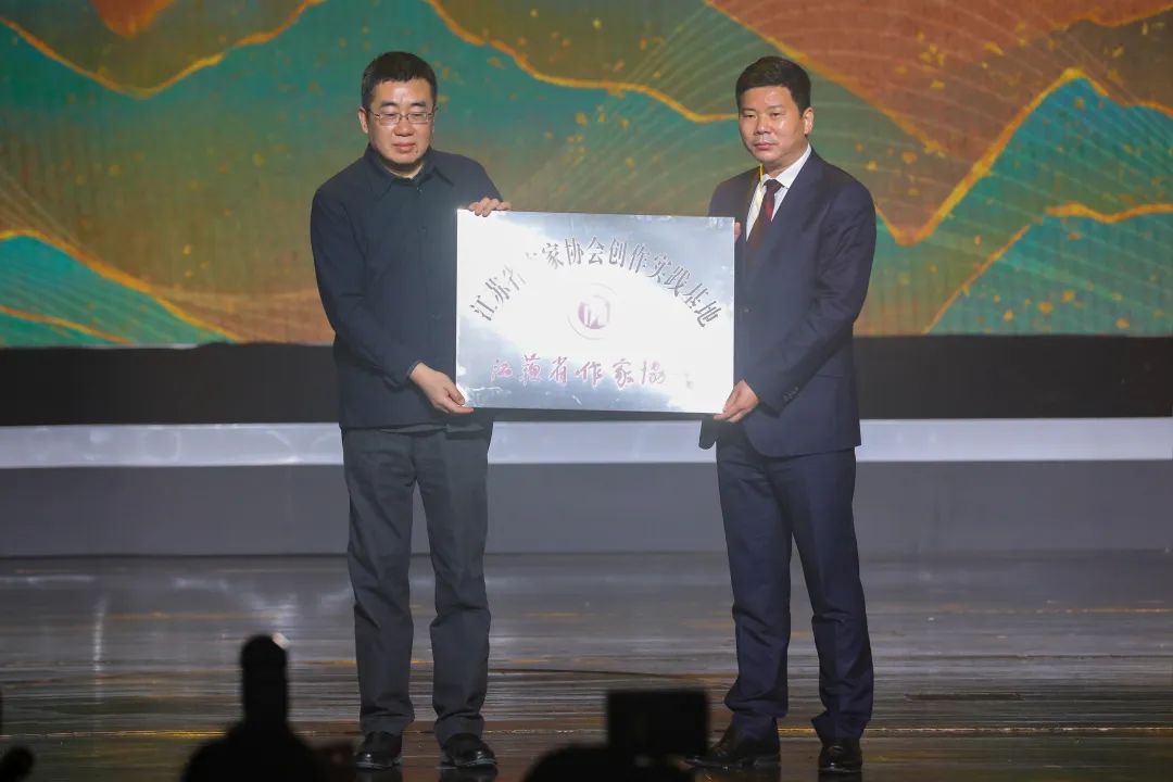 此次活動上,省作協(xié)還在高曉聲故鄉(xiāng)鄭陸鎮(zhèn)設立了“江蘇省作家協(xié)會創(chuàng)作實踐基地”,丁捷向鄭陸鎮(zhèn)黨委書記李漢田授牌。