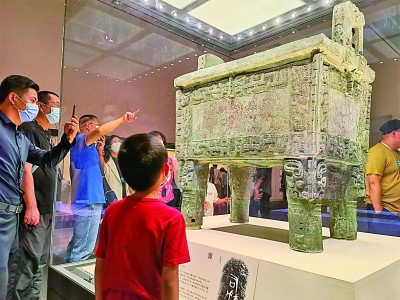 參觀博物館已成為不少人休閑娛樂的選擇。圖為國家博物館展廳里,后母戊大方鼎總是觀眾心目中的明星。李韻攝/光明圖片
