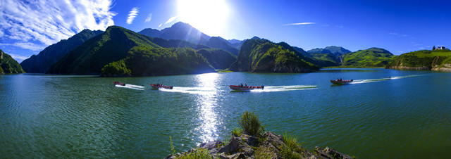 人們生態(tài)環(huán)保意識(shí)的提高和散養(yǎng)牛羊的驟減,使得庫區(qū)植被迅速恢復(fù)。一到夏日,山清水秀、鳥語花香。風(fēng)起時(shí),碧波蕩漾,青山如黛,碧水如玉,極富動(dòng)態(tài)之美。風(fēng)止時(shí),水平如鏡,藍(lán)天白云和青山綠樹倒映水中,猶如一幅絢麗多姿的山水畫。到了晚上,月亮露出山頭,山影綽綽,山色一片靜謐,一片朦朧,唯月亮在水中輕輕搖曳,而山峰樹木則在月光的清輝里靜靜入睡,堪稱人間仙境。