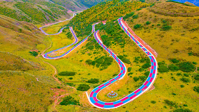 出臨潭縣城,沿著國道248線向東,山連著山,梯田疊著梯田,蔥綠的麥苗和金黃的油菜花相互交織,像連綿不絕的云錦。最佳觀景臺(tái),位于國道邊的尕灣梁。一到八月,遠(yuǎn)道而來的人在木棧道上、在山頂小亭里,相互拍照或自拍,要將這清涼的風(fēng)、棉花似的云、新鮮的空氣吸納進(jìn)考察游記里。