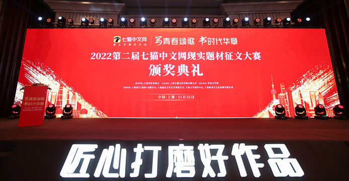 11月25日,由上海市作家協(xié)會(huì)指導(dǎo),上海七貓文化傳媒有限公司(以下簡(jiǎn)稱“七貓”)主辦,華語(yǔ)文學(xué)網(wǎng)協(xié)辦的2022第二屆七貓中文網(wǎng)現(xiàn)實(shí)題材征文大賽頒獎(jiǎng)典禮在上海舉辦。