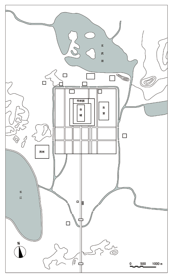 在梁朝之前,建康華林園的主要景致已經(jīng)建成,山水佳勝,花木繁茂,殿堂樓臺(tái)連綿起伏。其總體格局模仿曹魏時(shí)期的洛陽華林園,西北部堆筑大土山,稱“景陽山”,東南部開辟大片水池,名為“天淵池”。
