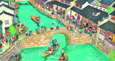 荷花鎮(zhèn)的早市 周翔繪