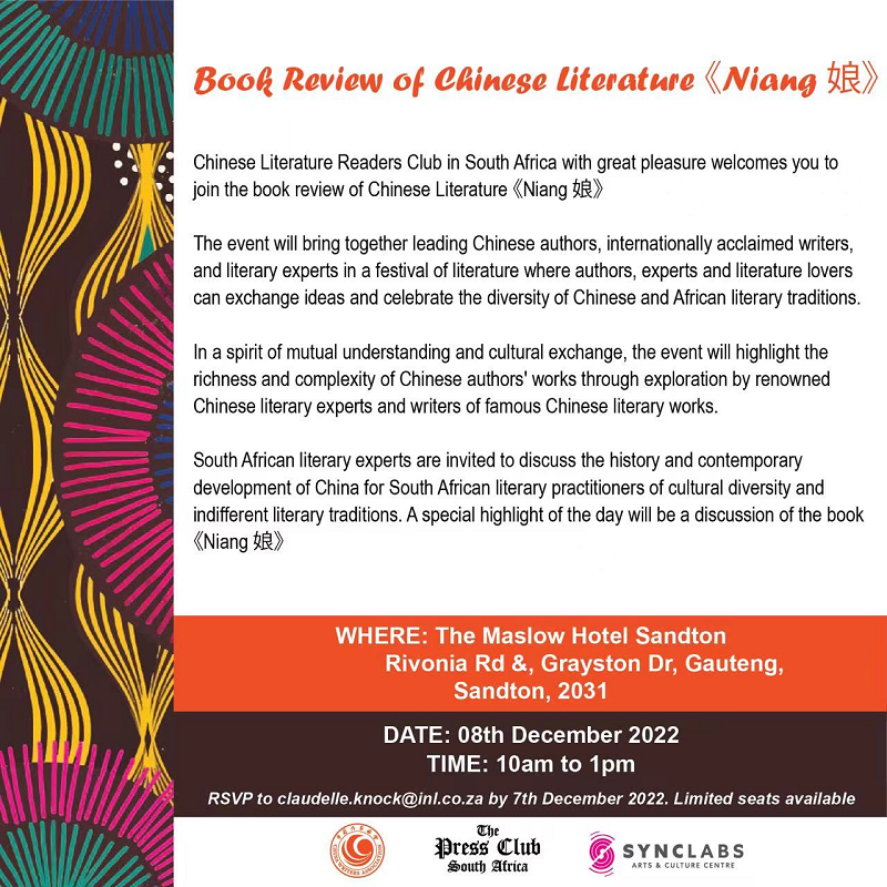 12月8日,南非“中國(guó)文學(xué)讀者俱樂(lè)部”在約翰內(nèi)斯堡舉辦成立以來(lái)的首場(chǎng)活動(dòng)?;顒?dòng)由中國(guó)作家協(xié)會(huì)指導(dǎo)和支持,由“漢語(yǔ)橋”俱樂(lè)部(開(kāi)普敦站)、南非《星報(bào)》聯(lián)合組織,以線上線下結(jié)合的方式,邀請(qǐng)作家彭學(xué)明在線參加,以“母愛(ài)的國(guó)際語(yǔ)言”為主題,對(duì)作品《娘》進(jìn)行深入解讀和探討。來(lái)自南非社會(huì)各界人士,包括“漢語(yǔ)橋”俱樂(lè)部開(kāi)普敦站會(huì)員、南非作家協(xié)會(huì)代表、南非《星報(bào)》主編、非洲青年企業(yè)家協(xié)會(huì)代表以及南非當(dāng)?shù)睾吐媚系闹袊?guó)文學(xué)愛(ài)好者踴躍參加,活動(dòng)持續(xù)3個(gè)多小時(shí),氣氛十分熱烈。