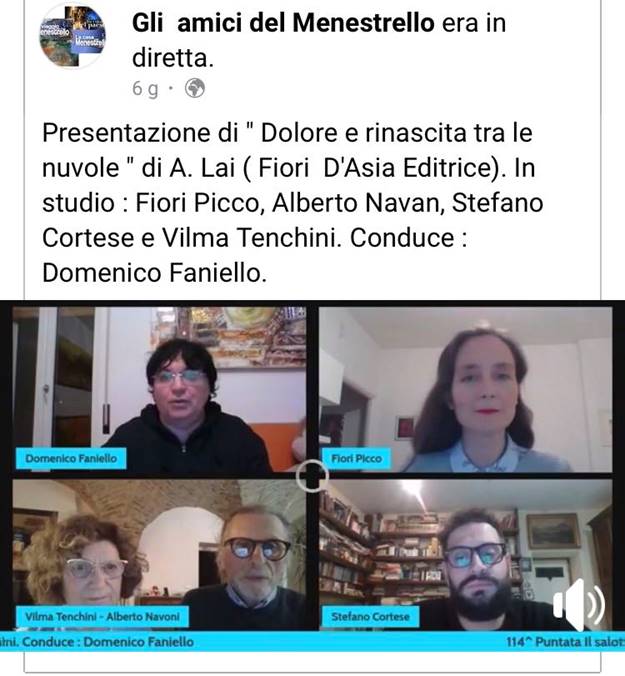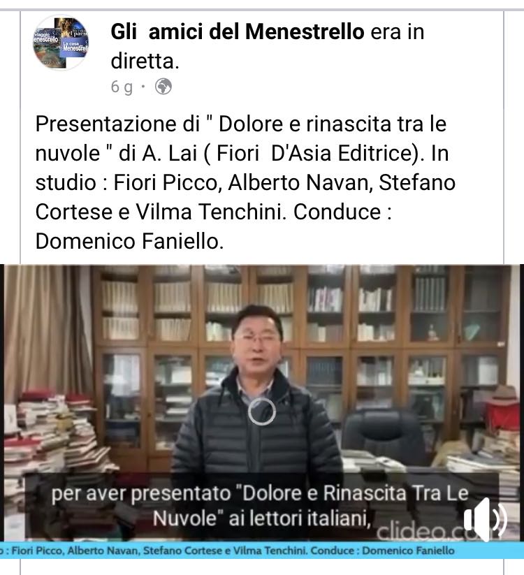 12月19日,意大利 “中國文學(xué)讀者俱樂部” 開展第二場線上讀書活動(dòng),推介了作家阿來的意大利文版長篇小說《云中的痛苦與重生》(中文版書名為:《云中記》)。此次俱樂部活動(dòng)由意大利花達(dá)西亞出版社 (Fiori d’Asia Editrice) 和意大利著名線上文學(xué)沙龍 “吟游詩人之家” (La Casa del Menestrello) 聯(lián)合舉辦。活動(dòng)同步通過優(yōu)兔和臉書平臺播放,吸引了一大批熱愛文學(xué)的意大利讀者在線觀看。