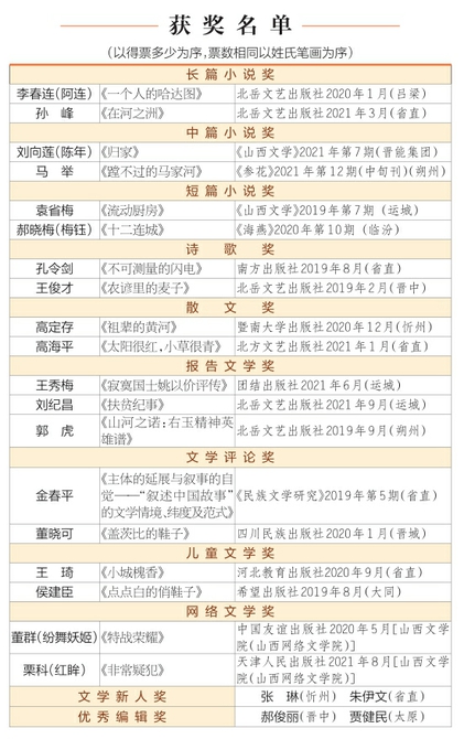 2019—2021年度“趙樹理文學(xué)獎(jiǎng)”揭曉