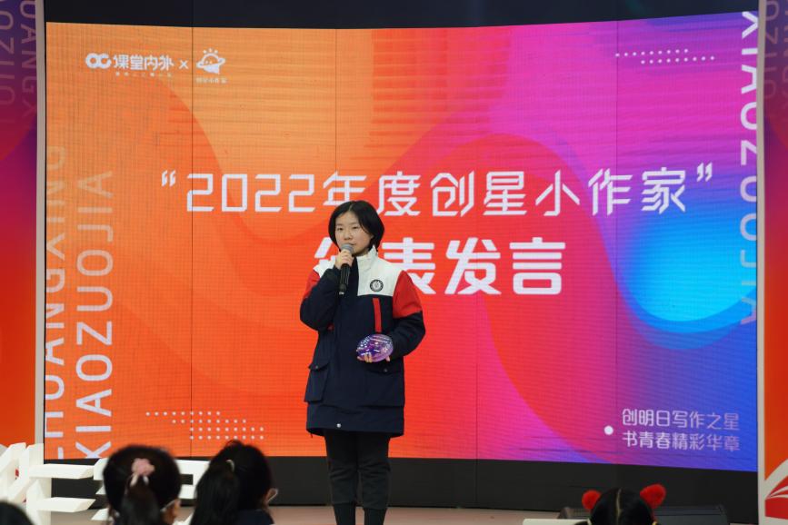 周丹彤作為“2022年度創(chuàng)星小作家”代表發(fā)言