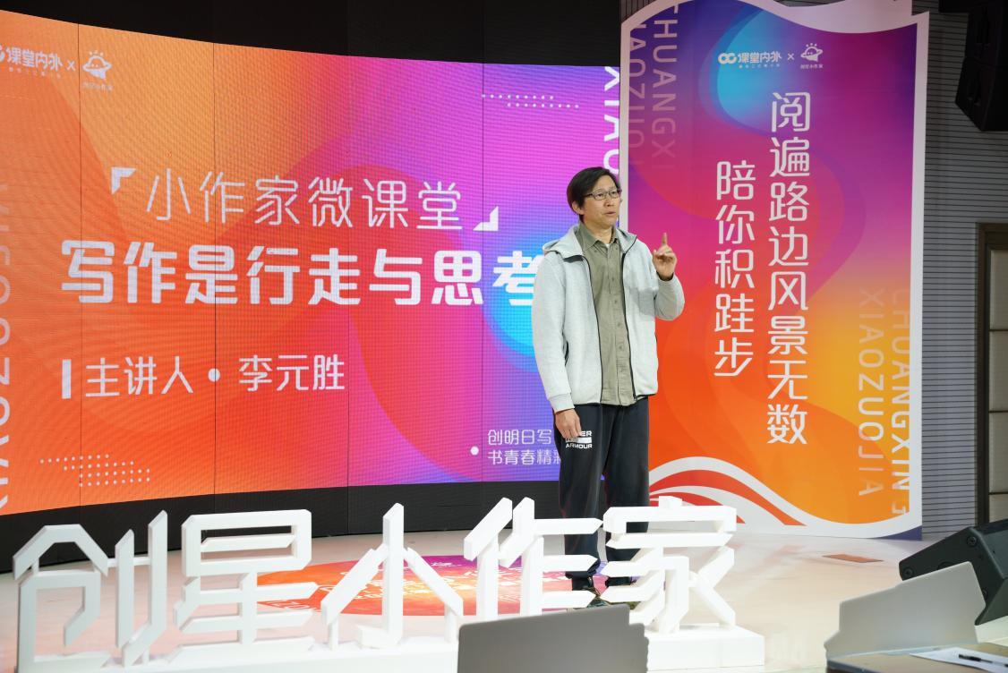 在“寫作是什么”主話題外,本次“創(chuàng)星小作家”2022年度盛典暨頒獎(jiǎng)典禮還分別設(shè)置了“寫作是行走與思考”“寫作是觀察與想象”“寫作是成長與夢(mèng)想”“寫作是星光與啟航”四個(gè)分話題,詩人李元?jiǎng)?、科幻作家蕭星寒、兒童文學(xué)作家李?yuàn)檴櫦罢n堂內(nèi)外出版人劉信中分別擔(dān)任主講人。
