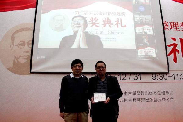 榮新江為《四庫(kù)存目標(biāo)注》頒獎(jiǎng),杜澤遜線上領(lǐng)獎(jiǎng)