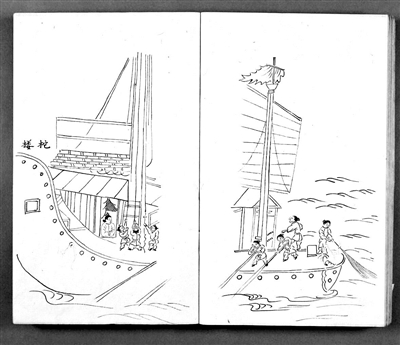 浮南海而南,舟如巨室,帆若垂天之云,舵長數(shù)丈,一舟數(shù)百人,中積一年糧,豢豕、釀酒其中,置死生于度外……人在其中,日擊牲酣飲,迭為賓主,以忘其危。