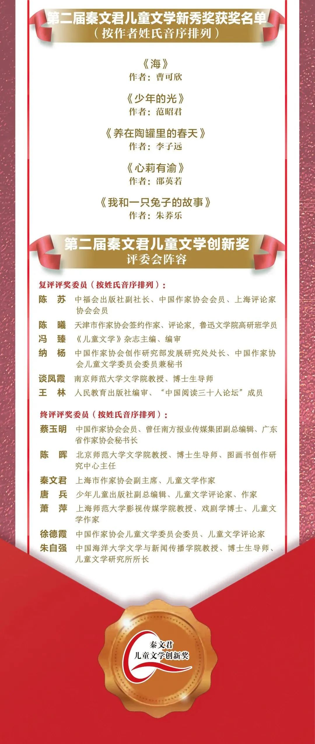 第二屆秦文君兒童文學(xué)創(chuàng)新獎頒獎,第三屆正式啟動