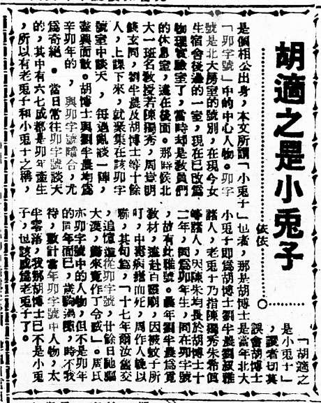 《胡適之是小兔子》,原載上?!读?bào)》,1949年3月19日。
