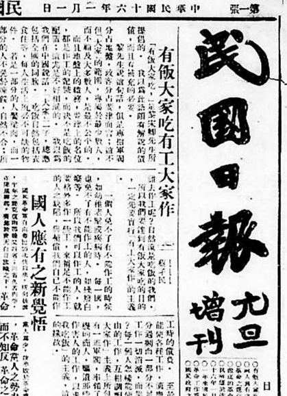 《民國日報(bào)》元旦增刊頭版(局部),1927年1月1日。