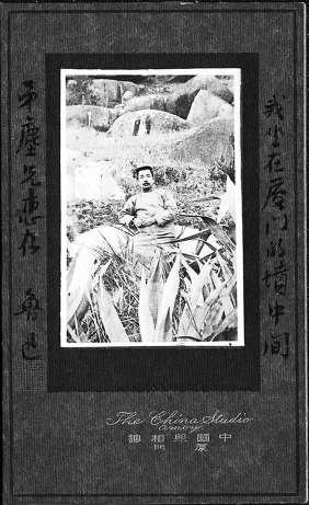 “今天照了一個(gè)照相,是在草木叢中,坐在一個(gè)洋灰的墳的祭桌上?!?/p>