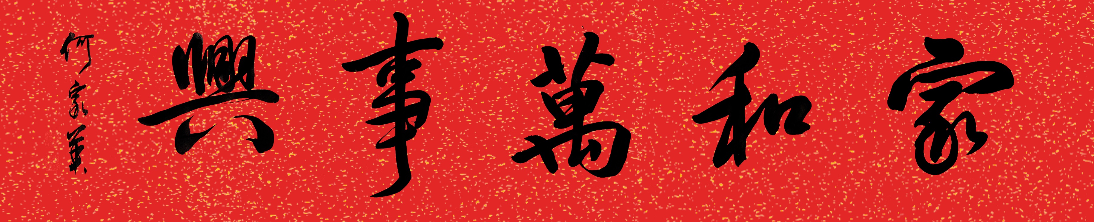 中國(guó)美協(xié)副主席何家英賀詞:家和萬(wàn)事興。
