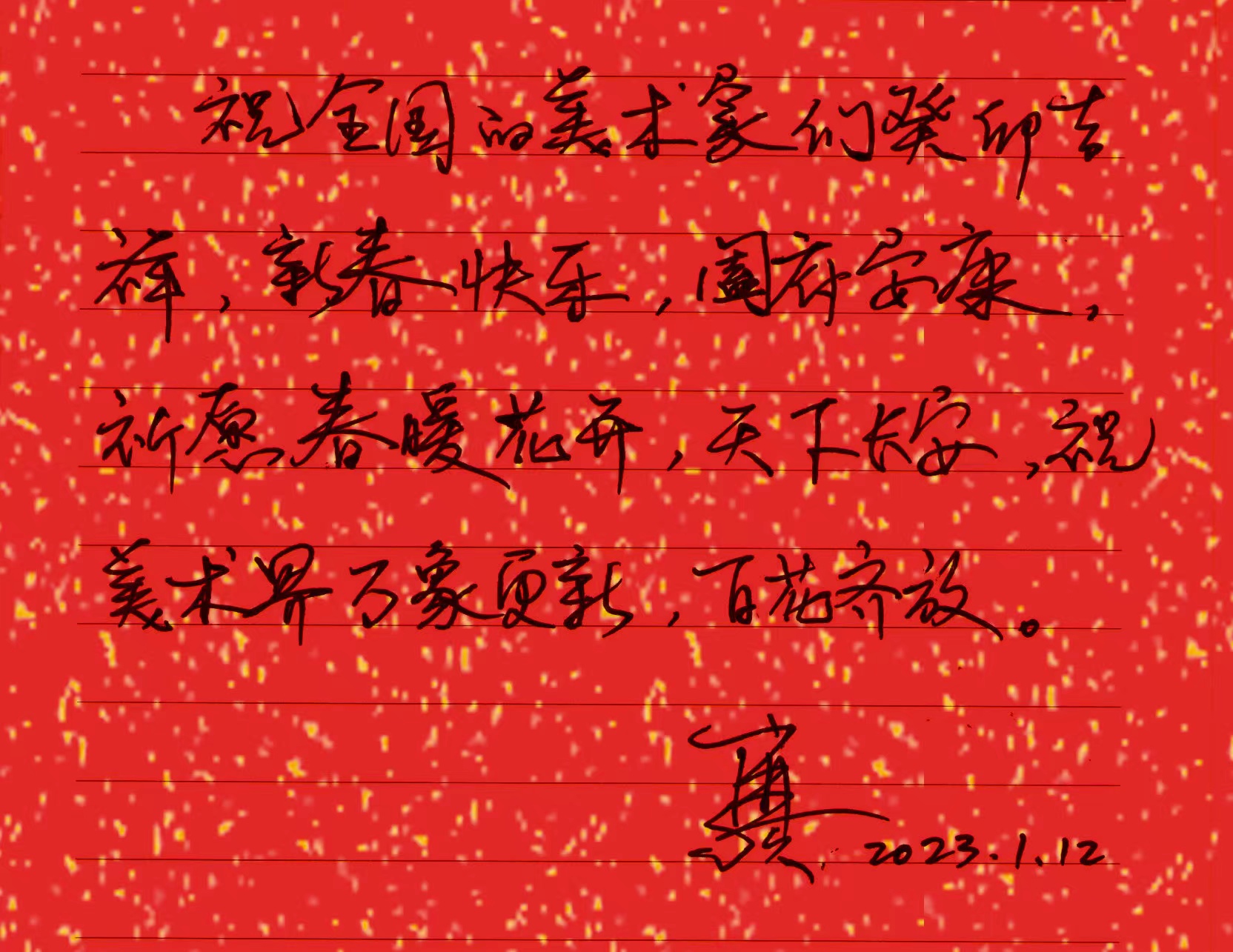 2023年,祝愿全國(guó)美術(shù)家,以誠(chéng)摯的時(shí)代情感、用自己創(chuàng)造的雙手,謳歌時(shí)代、書(shū)寫出中國(guó)藝術(shù)的精氣神,共同為人民提供更豐富高雅文明、溫暖親民的藝術(shù)精神食糧,共祝愿明天會(huì)更好!
