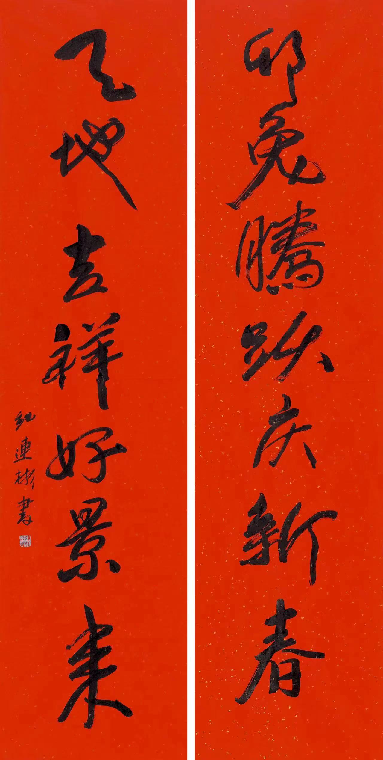 中國(guó)畫學(xué)會(huì)副會(huì)長(zhǎng)紀(jì)連彬賀詞:卯兔騰躍慶新春,天地吉祥好景來(lái)。