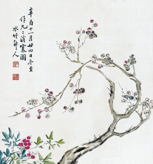梅花型消寒圖被稱為“雅圖”。圖上先畫素梅一枝,梅花或正或側(cè),或盛開,或尚為花苞,共八十一瓣。每天染紅一瓣,到第九九八十一天時(shí),花瓣全被涂染成了紅色,就是一枝紅梅迎春風(fēng)。古代閨閣中的女子早起化妝時(shí)便用胭脂暈染一瓣,別有趣味。