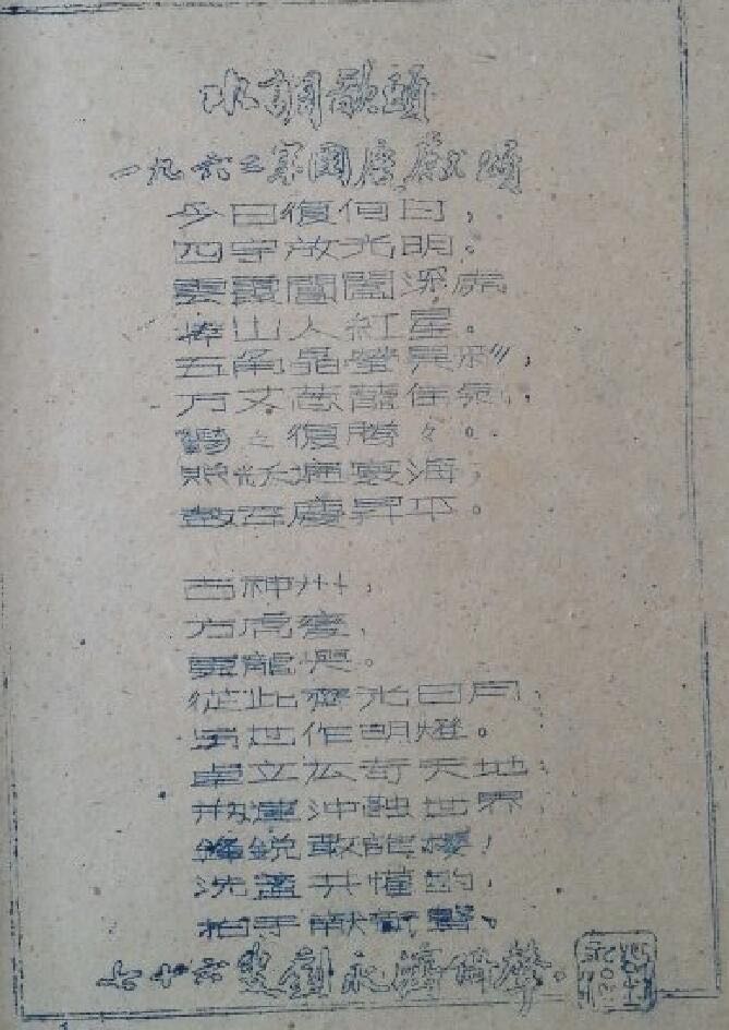 只可惜當時“自印自發(fā)”的條件太差了?!叭昀щy時期”剛過,一臺油印機十分簡陋,據(jù)說還要公安局備案才能買得到。紙張更非常粗糙低劣,不僅黑而且有疙瘩。我沒有多參加勞作,但非常欽佩劉衛(wèi)祖親自設計繪畫和彩色套印的《珞珈山文藝》封面。還在一樓宿舍看過高年級同學刻蠟板——這是《珞珈山文藝》技術含量最高的工序:將蠟紙鋪在布滿細紋的鋼板上,拿一只鐵筆沙沙刻寫。用力輕了顯不出字跡,用力重了會劃破蠟紙,刻錯了就用香煙頭湊近烤一下,讓蠟融化后重刻。油印機的學問也很深,小心翼翼把蠟紙鋪在紗網(wǎng)上夾緊,邊緣對不齊就會漏墨,推輥子用力不當將引起蠟紙折皺,油墨不均勻又會讓版面看上去像“瘌痢頭”。我?guī)兔ψ鲞^疊紙和裝訂工作??傄姷焦胚h清喜氣洋洋地忙進忙出,臉上常?;卣持鴰滋幱湍?。