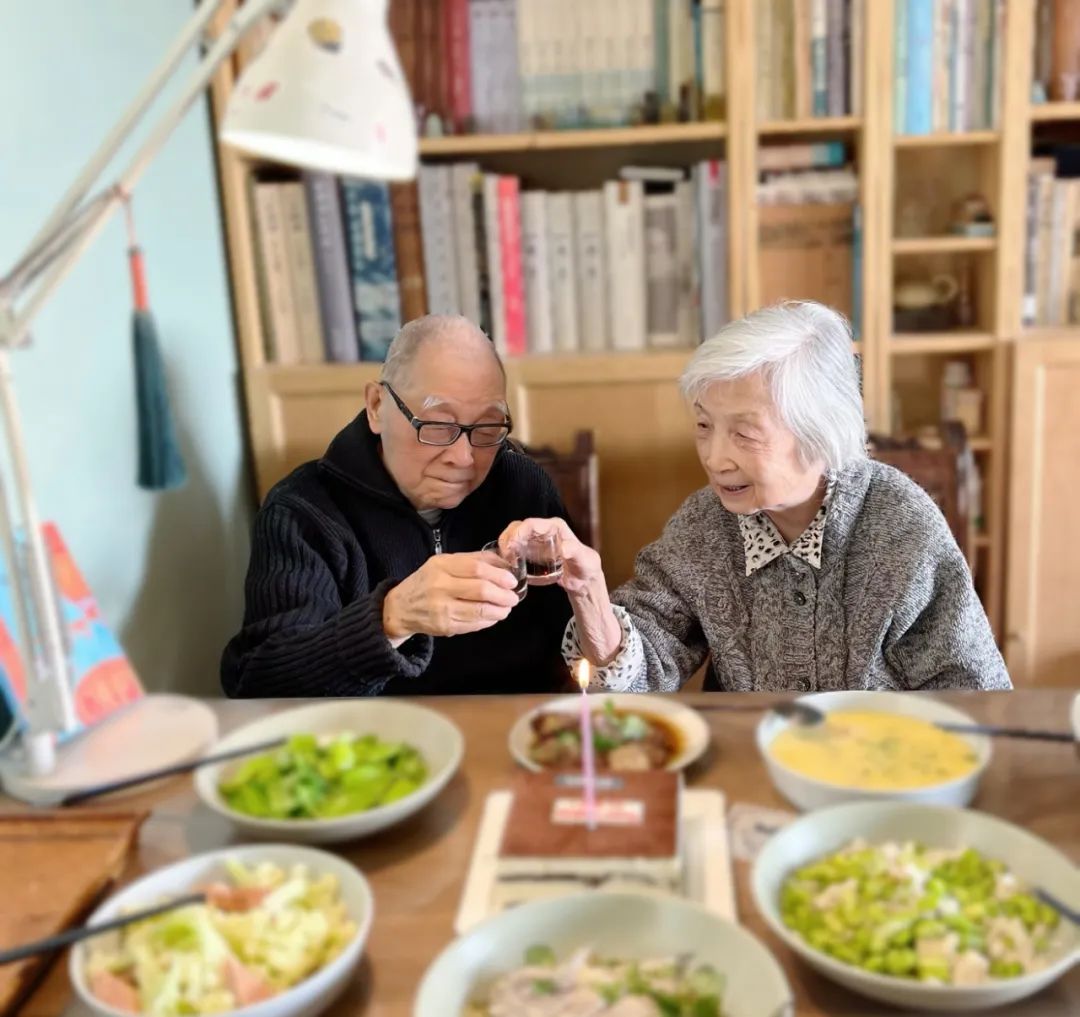 餐桌前,燈光下的老爸爸面色光潔,兩道雪白的長壽眉,笑瞇瞇的眼睛。因為動作遲緩而多幾分憨態(tài),又純又萌,可愛得我看不夠。