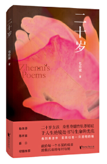 《二十歲》是浙江省溫州市文成縣女孩包珍妮的詩(shī)集。包珍妮罹患脊髓性肌萎縮癥(SMA),醫(yī)生曾“宣判”她活不過(guò)4歲,但她現(xiàn)在已活過(guò)了20歲。她多次闖“鬼門關(guān)”,正常的肺功能早已喪失,呼吸依賴一臺(tái)24小時(shí)不間斷運(yùn)作的呼吸機(jī)。她不僅自己與病魔頑強(qiáng)抗?fàn)?,還鼓勵(lì)父母要勇敢面對(duì)現(xiàn)實(shí)。為了活出生命的意義,她憑借唯一能動(dòng)的右手大拇指,在手機(jī)上創(chuàng)作詩(shī)和歌詞。她的作品被毛不易、廖俊濤、鐘易軒等明星傳唱。著名詩(shī)人商震、謝克強(qiáng)、慕白等都被她的事跡感動(dòng),給予其詩(shī)作好評(píng)。