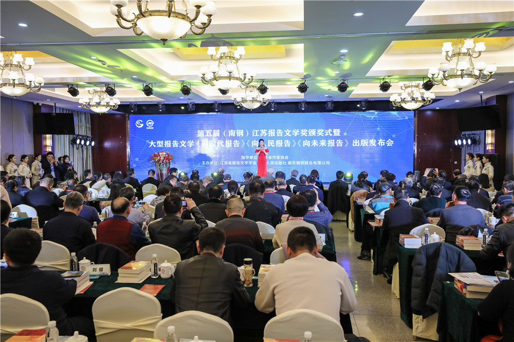 2月16日,文學(xué)之都南京春風(fēng)和煦,第五屆(南鋼)江蘇報(bào)告文學(xué)獎(jiǎng)?lì)C獎(jiǎng)式暨大型系列報(bào)告文學(xué)《向時(shí)代報(bào)告》《向人民報(bào)告》《向未來報(bào)告》出版發(fā)布會(huì)在南鋼賓館隆重舉行,10位作家捧回了沉甸甸的報(bào)告文學(xué)獎(jiǎng)獎(jiǎng)杯。