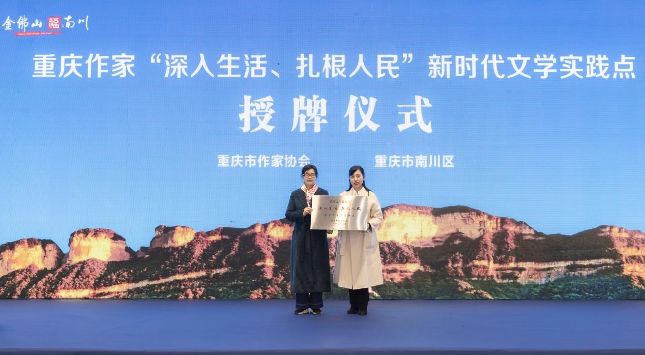 冉冉代表重慶市作協(xié)向南川區(qū)授牌
