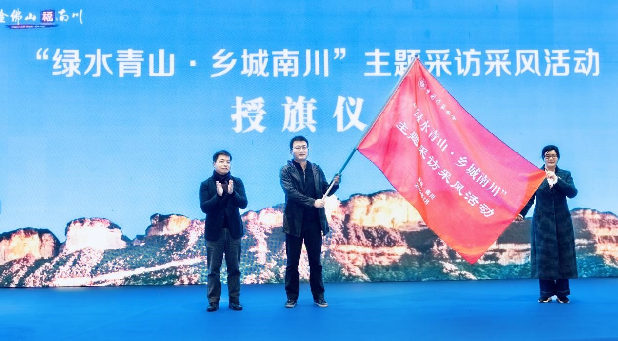 授牌儀式上,彭學明、冉冉、康平分別代表中國作協(xié)、重慶市作協(xié)和南川區(qū)簽訂“新時代文學實踐點”三方合作協(xié)議。邱華棟、冉冉分別代表中國作協(xié)、重慶市作協(xié)向南川區(qū)授予中國作家、重慶作家“深入生活、扎根人民”新時代文學實踐點牌匾。鄧凱向作家代表冉冉、海飛授旗,正式啟動“綠水青山·鄉(xiāng)城南川”主題實踐活動。