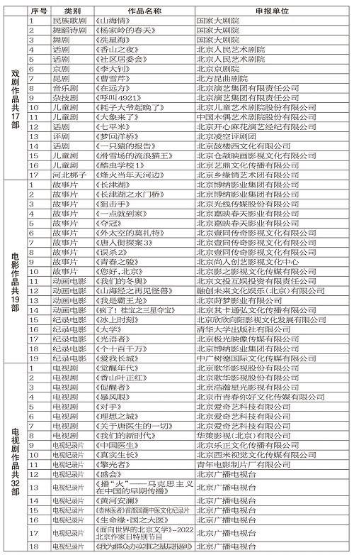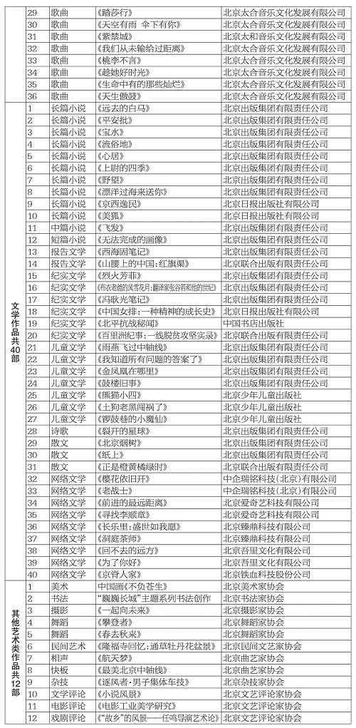第十屆北京市文學(xué)藝術(shù)獎參評作品(共163部)