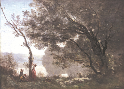 19世紀(jì)初,最早被吸引到巴比松的是風(fēng)景畫(huà)大師卡米耶·柯羅(Camille Corot,1796-1876)。他生于巴黎一個(gè)富商之家,得父母應(yīng)允和資助,自青年時(shí)期開(kāi)始習(xí)畫(huà),打下堅(jiān)實(shí)的傳統(tǒng)美術(shù)基礎(chǔ)。但是,他更傾向于露天寫(xiě)生,自由地深入大自然,暢想描繪林中仙女和人身羊足、頭上長(zhǎng)角的農(nóng)牧神,形成自身獨(dú)特的天然景色結(jié)構(gòu)。他以《塞納河岸》和《阿沃萊市郊》等作品稱(chēng)稀,成為首位妙筆卓著的巴比松派畫(huà)家。