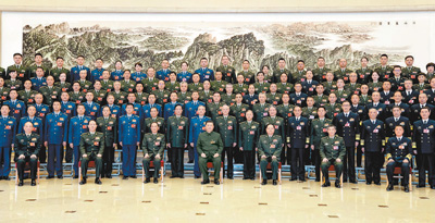 會(huì)前,習(xí)近平親切接見出席十四屆全國人大一次會(huì)議解放軍和武警部隊(duì)代表團(tuán)全體代表,并同大家合影留念。