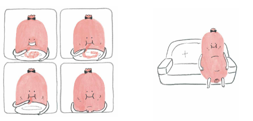 當(dāng)被問到“為什么書中是香腸和小狗相遇”時(shí),安寧達(dá)這樣說:“你可能會(huì)認(rèn)為小狗和香腸爺爺?shù)慕M合有點(diǎn)奇怪,但當(dāng)我寫這個(gè)故事的時(shí)候,我不知為何會(huì)認(rèn)為香腸會(huì)喜歡小狗?!?/p>
