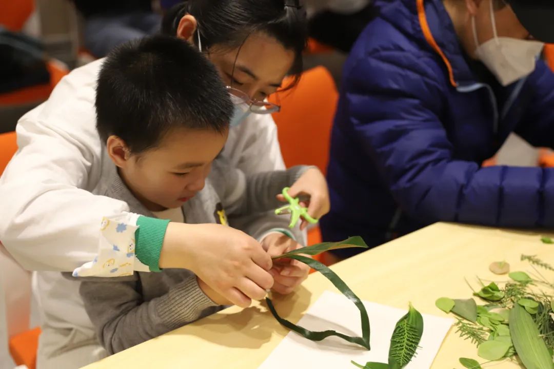 活動現(xiàn)場小讀者在做手工樹葉畫