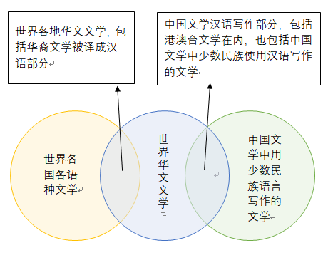 實際上,“世界華文文學”與“中國文學”、“海外華文文學”以及“世界各國各語種文學”形成你中有我我中有你的交疊局面。