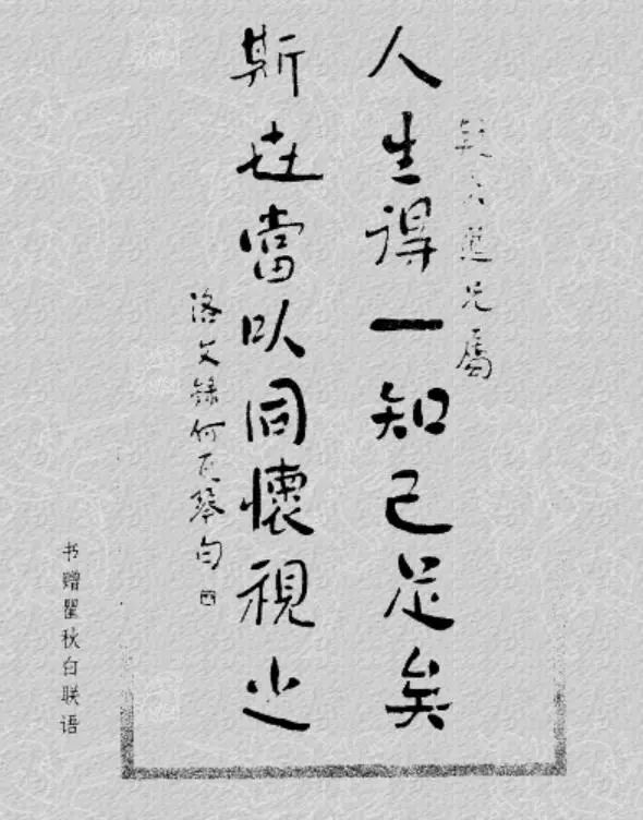 人物的重新出現(xiàn)作為政治評價發(fā)生轉(zhuǎn)變的標(biāo)志,“七人照”并非孤證,1981年版還有兩張照片需要討論。一是第五卷第三張“書贈瞿秋白聯(lián)語”。自從1964年毛澤東對李秀成自述和瞿秋白《多余的話》的批評,瞿秋白被定性為黨內(nèi)叛徒,“文革”期間瞿秋白及其父母墓被砸毀?!拔母铩苯Y(jié)束后雖然歷經(jīng)曲折,瞿秋白正式平反要等到 1982年9月中共第十二次全國代表大會中紀(jì)委的報告,但事實(shí)上的平反在1980年已經(jīng)開始。是年6月17日,中國文聯(lián)、中國作協(xié)和中國社會科學(xué)院在人民大會堂聯(lián)合舉行座談會,紀(jì)念瞿秋白就義45周年,周揚(yáng)在會上講話,高度贊揚(yáng)瞿的一生。1980年10月19日,中共中央辦公廳發(fā)出了轉(zhuǎn)發(fā)中紀(jì)委《關(guān)于瞿秋白同志被捕就義情況的調(diào)查報告》的通知,認(rèn)定《多余的話》絕不是叛變投降的自白書,標(biāo)志著對從1964年就開始羅織的“瞿秋白自首叛變案”的平反。[29]考慮到第五卷的發(fā)稿時間也是1980年[30],基本與瞿秋白平反同步,1981年版《魯迅全集》特意挑選魯迅給瞿秋白寫的條幅,昭示魯迅與瞿秋白生死知己的關(guān)系,似乎有確認(rèn)與加持瞿秋白平反的作用。