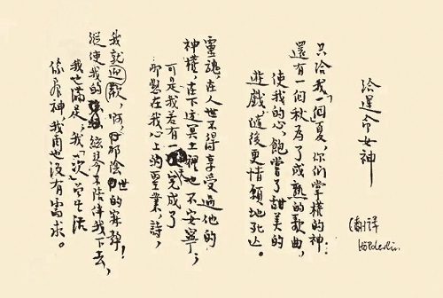 馮至翻譯荷爾德林詩《給運(yùn)命女神》手稿
