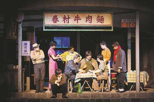 寫信與讀信是劇中的重要場(chǎng)面,既是敘事,又是抒情,它讓舞臺(tái)的時(shí)空轉(zhuǎn)換順理成章、靈活自如。這讓我想起2004年初,臺(tái)灣曾有一出戲叫《收信快樂》(編劇、導(dǎo)演單承矩)來北京演出,那部戲用76封信講述了一對(duì)戀人跨越40余年的愛情故事,劇中僅有兩位演員讀信的表演,卻高潮迭起,十分打動(dòng)人。此次臺(tái)灣導(dǎo)演李宗熹吸收了這種有效的舞臺(tái)手段,并且讓兩代讀信人都從中獲益。李金標(biāo)的孫子李明維在幫爺爺寫信的過程中,與小茹的女兒婷婷因?yàn)橥ㄐ哦ド酶?,繼而相戀成婚。李金標(biāo)的重孫慶慶一度嫌開小店沒勁,對(duì)客人不耐煩,直到他無意間讀到太爺爺寫給母親的信后,才意識(shí)到這個(gè)面館對(duì)于他們家的意義,獲得了對(duì)家族的認(rèn)同感。