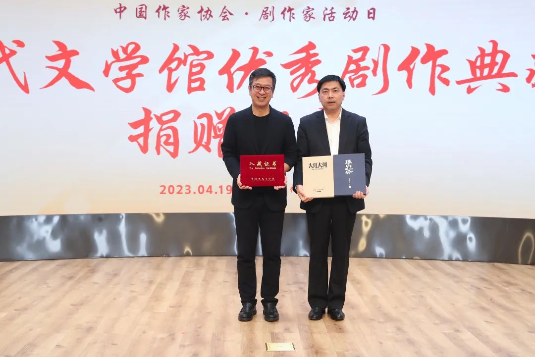 活動現(xiàn)場,劉和平向中國現(xiàn)代文學(xué)館捐贈了電視劇《雍正王朝》、祁劇《甲申祭》手稿,中國現(xiàn)代文學(xué)館常務(wù)副館長王軍代表中國現(xiàn)代文學(xué)館接受捐贈并向劉和平回贈入藏證書。9家影視公司代表向中國現(xiàn)代文學(xué)館捐贈了優(yōu)秀劇本或光盤,王軍代表中國現(xiàn)代文學(xué)館接受捐贈。其中,中影公司黨委書記、董事長傅若清捐贈電影《流浪地球》《流浪地球2》劇本,湖南廣播電視臺副臺長徐蓉捐贈《江山如此多嬌》劇本,愛奇藝CEO龔宇捐贈電視劇《風(fēng)吹半夏》劇本,優(yōu)酷總裁樊路遠(yuǎn)捐贈電視劇《覺醒年代》《幸福到萬家》劇本,新麗傳媒副總裁田甜捐贈電視劇《人世間》劇本,華策影視董事長趙依芳捐贈電視劇《我們這十年》《萬里歸途》劇本,東陽正午陽光董事長侯鴻亮捐贈電視劇《瑯琊榜》《大江大河》劇本,博納影業(yè)集團(tuán)行政總裁蔣德富捐贈電影《智取威虎山》《烈日灼心》《烈火英雄》劇本,騰訊視頻影視部副總經(jīng)理黃杰捐贈電視劇《三體》劇本。