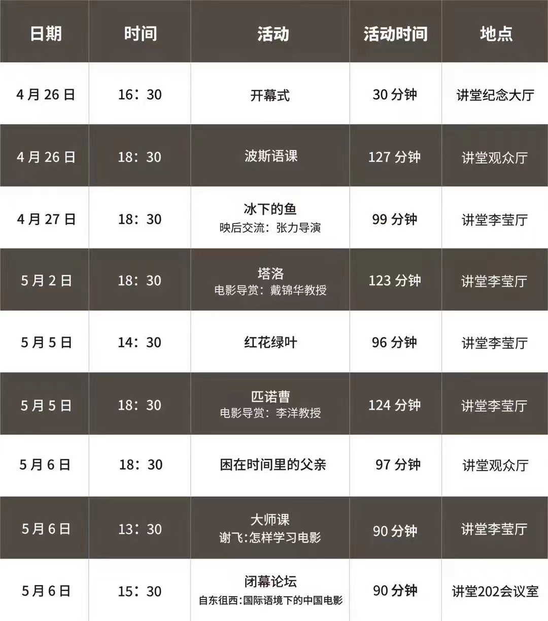 本次金雞藝術(shù)電影展將于4月26日至5月6日在北京大學(xué)百周年紀(jì)念講堂舉行。期間將展映《波斯語(yǔ)課》《匹諾曹》等6部國(guó)內(nèi)外電影,這些影片均為近兩屆中國(guó)電影金雞獎(jiǎng)提名及獲獎(jiǎng)作品。電影展活動(dòng)期間還設(shè)置了“映后主創(chuàng)交流”“知名教授電影導(dǎo)賞”“電影大師課”“學(xué)術(shù)論壇”等環(huán)節(jié)。參加展映活動(dòng)的電影創(chuàng)作者和理論研究者將與北京大學(xué)師生就展映影片展開(kāi)對(duì)話(huà),并對(duì)當(dāng)下國(guó)內(nèi)外影展和行業(yè)現(xiàn)狀等進(jìn)行交流。