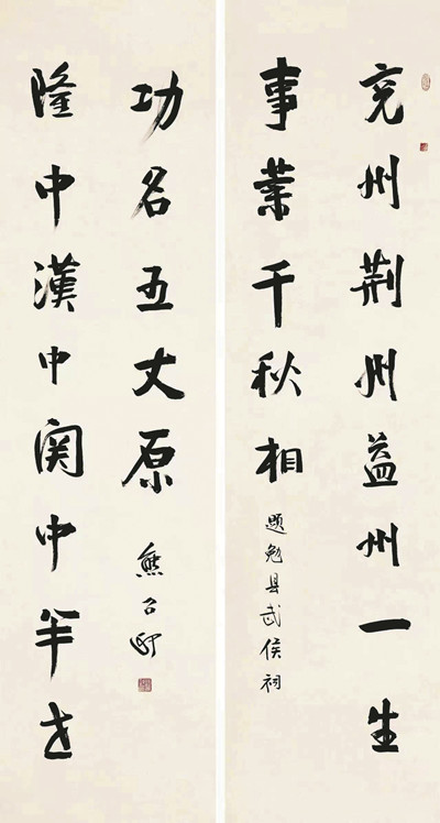 觀看《翰墨中華》展覽后,深感其特點之一是:詩書雙暢,珠聯(lián)璧合;文人書風(fēng),端雄清雅。其端雄的韻味往往以楷行的筆調(diào)、碑意的線條展示出器宇軒昂的正大氣象,如賞故國神游篇章中《題勉縣武侯祠》的龍門對“兗州荊州益州一生事業(yè)千秋相,隆中漢中關(guān)中半世功名五丈原”,聯(lián)莊詞工、字端氣雄,這幅作品堪稱佳作。熊召政先生在故國神游篇中有一副對聯(lián)《題漢中石門陳列館》中寫道:“天下英雄歸漢室,筆底風(fēng)濤入石門”,可謂詩書合璧,精神飛動,有氣韻酣暢,意精墨妙之豪趣。