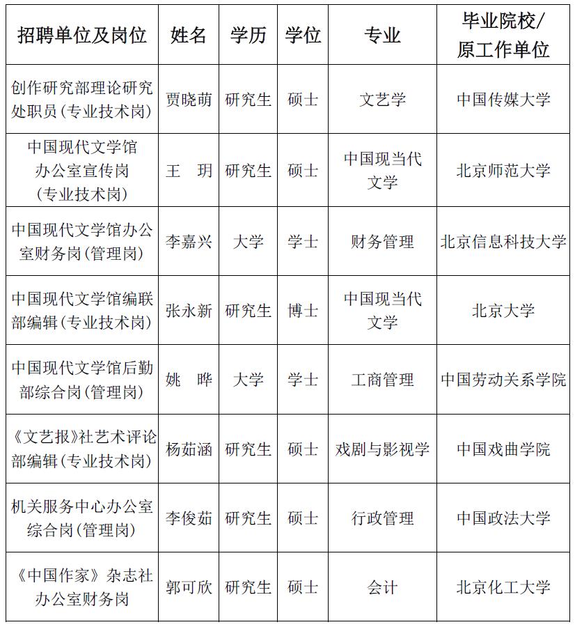 2023年度中國(guó)作協(xié)所屬單位擬聘人員公示
