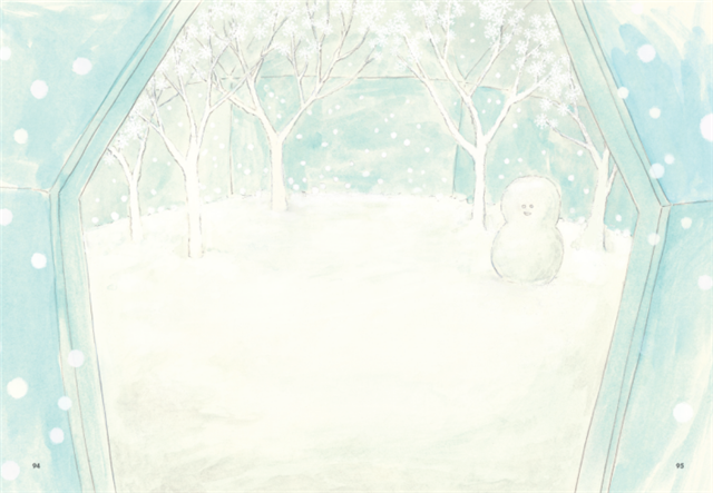 這部描寫(xiě)女性?shī)^力挽救被融化的雪孩子的作品,沒(méi)有回避黑暗痛苦的故事,而是直視前方,追問(wèn)城市以外的邊緣人能否幸福并愿意保護(hù)他們所珍視的東西。《冰房子》的主人公是一位能令人產(chǎn)生共鳴的母親,故事發(fā)生在冬天的一個(gè)夜晚,在荒涼之地獨(dú)自生活的女人生下了一個(gè)雪孩子。隨著春天的臨近,小房子里變得越來(lái)越熱,雪孩子面臨融化的危險(xiǎn)。唯有城市中,名為“永遠(yuǎn)是冬天”的冰房子能讓他生存下去。為守護(hù)最珍愛(ài)的雪孩子,女人向城市奔去……