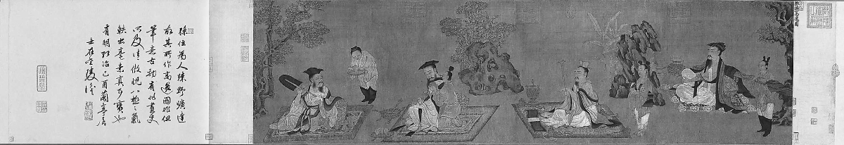 清談的形式不拘一格,有兩人對(duì)談的,有隔空筆談的,但大多數(shù)是群賢畢至、少長(zhǎng)咸集式的聚會(huì)。聚會(huì)一般要有幾大要素,貴族的園林或豪宅,飲酒、名士、曲水流觴等,總之要服務(wù)一個(gè)目的,讓清談顯得高雅、有趣、快樂、令人神往,魏晉時(shí)期許多名場(chǎng)面就是這樣誕生的,諸如曹丕與建安諸友游宴,竹林七賢的另類清談會(huì),西晉石崇舉辦的金谷詩(shī)會(huì),東晉王羲之的蘭亭雅集等。