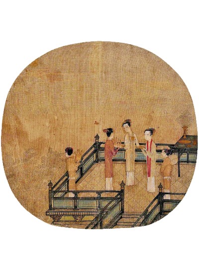 受程朱理學影響,宋代女性服色多崇淡青、墨綠、白等素雅色系,以粉紫、黑紫、蔥白、銀灰、沉香色等點綴為配色,自帶恬靜淡雅、自然端莊之美,與唐代服飾紅、紫、綠、青等艷麗之彩頗為不同。這些于宋代詞作和畫作之中均有據(jù)可查?!扒嗳怪耋雍嗡担鬻贌顭顮颗;ā薄鞍遵嗯畠合登嗳?,東家西家世通婚”,此為陸游詩詞,描寫村女日常穿著白色短衣,青色女裙,服色以淡青為基調(diào),衣著以青白素色為常,服飾之美融入生活意境,多顯江南風土人情。秦少游于《南歌子·香墨彎彎畫》中寫道,“揉藍衫子杏黃裙”,揉藍為浸揉藍草而成湛藍色,杏黃指黃而微紅之色,女子服飾淡色清純,素色高雅。宋代經(jīng)典畫作亦少濃墨重彩,而多恬淡簡樸。朱淑真于《夏日游水閣》中寫道“淡紅衫子透肌膚”,寫出了衫色之淡、素、薄,體現(xiàn)宋人服飾用色儒雅之韻。