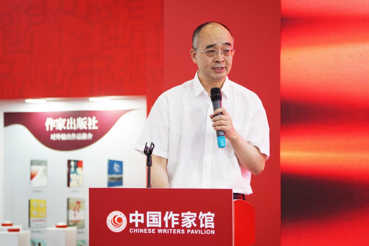 吳義勤在代表中國作協(xié)的致辭中表示,黨的十八大以來,以習(xí)近平同志為核心的黨中央對(duì)文藝事業(yè)高度重視,給予殷切關(guān)懷,作出了一系列重要論述和指示批示,在新的歷史方位上為新時(shí)代文學(xué)高質(zhì)量發(fā)展指明了前進(jìn)方向、提供了根本遵循。中國作協(xié)團(tuán)結(jié)引領(lǐng)廣大作家以高度的歷史自覺和文化自信,創(chuàng)作出一大批反映時(shí)代歷史巨變、展現(xiàn)人民昂揚(yáng)風(fēng)貌、充盈人民精神生活的優(yōu)秀作品,譜寫了新時(shí)代文學(xué)的嶄新篇章。站在新的歷史起點(diǎn),我們舉辦中國作家館的活動(dòng),既是對(duì)新時(shí)代十年的回顧總結(jié),更是踏上新征程的出發(fā)動(dòng)員。當(dāng)前,中國文學(xué)界正在深入學(xué)習(xí)貫徹黨的二十大精神、積極開展主題教育實(shí)踐、認(rèn)真學(xué)習(xí)領(lǐng)會(huì)習(xí)近平總書記在文化傳承發(fā)展座談會(huì)上的重要講話精神,我們要以習(xí)近平總書記關(guān)于文藝工作的一系列重要論述和指示批示精神為指引,堅(jiān)定文化自信、文學(xué)自信,主動(dòng)擔(dān)負(fù)新的文化使命,為建設(shè)中華民族現(xiàn)代文明和社會(huì)主義文化強(qiáng)國作出文學(xué)貢獻(xiàn),彰顯新時(shí)代文學(xué)的宏偉力量。