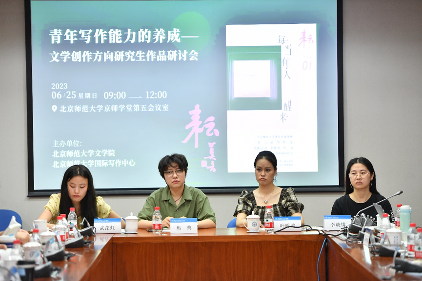 6月25日,作為“新時(shí)代文學(xué)教育高峰論壇暨北京師范大學(xué)國際寫作中心成立十周年慶典”系列活動的分論壇,北京師范大學(xué)文學(xué)院、北京師范大學(xué)國際寫作中心聯(lián)合舉辦“青年寫作能力的養(yǎng)成——《耘:每當(dāng)有人醒來》北師大文學(xué)創(chuàng)作方向研究生作品研討會”。
