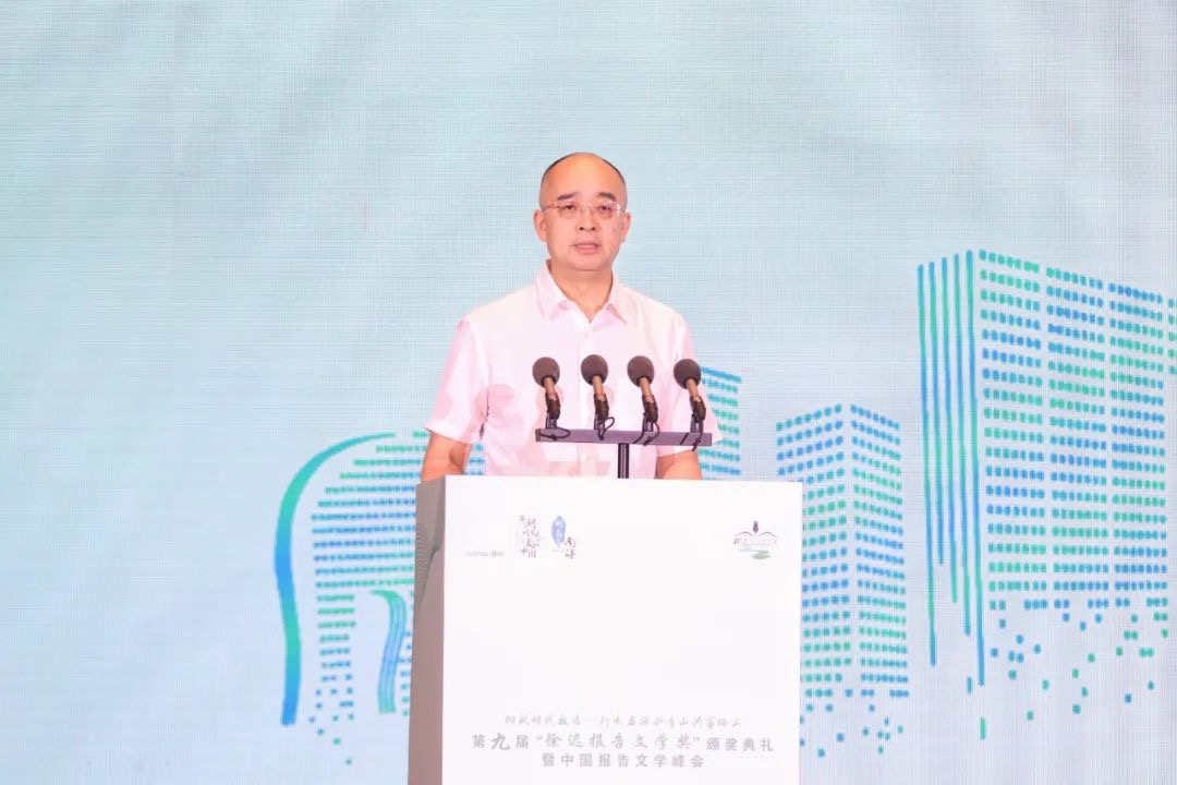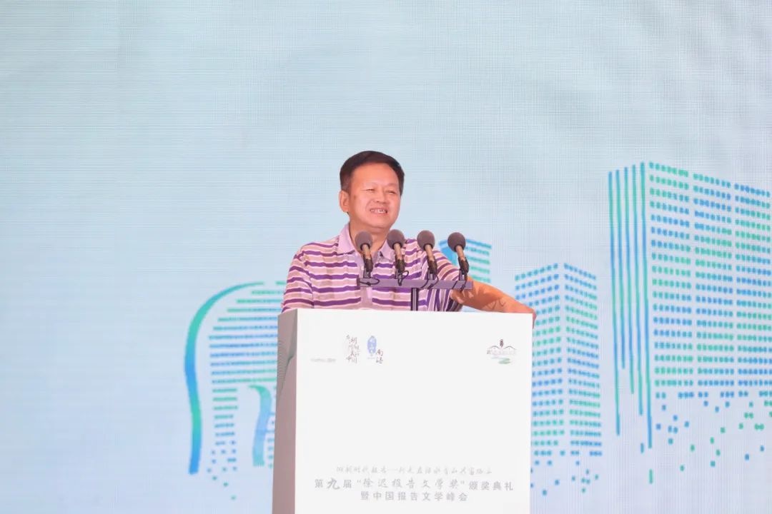 吳義勤代表中國(guó)作家協(xié)會(huì)向獲獎(jiǎng)作家表示祝賀,對(duì)湖州市委市政府和南潯區(qū)委區(qū)政府長(zhǎng)期以來對(duì)文學(xué)事業(yè)的支持表示感謝。他說,徐遲報(bào)告文學(xué)獎(jiǎng)的創(chuàng)辦既是為了向徐遲先生致敬,也是為了推動(dòng)中國(guó)報(bào)告文學(xué)事業(yè)的持續(xù)繁榮,促進(jìn)報(bào)告文學(xué)人才成長(zhǎng)。本次獲獎(jiǎng)作品充分體現(xiàn)了近年來中國(guó)報(bào)告文學(xué)創(chuàng)作的視野之廣、內(nèi)涵之深,充分彰顯了報(bào)告文學(xué)創(chuàng)作在思想性、藝術(shù)性、可讀性等方面的可喜進(jìn)步。希望廣大報(bào)告文學(xué)作家繼承弘揚(yáng)徐遲先生開創(chuàng)的報(bào)告文學(xué)創(chuàng)作優(yōu)良傳統(tǒng),學(xué)習(xí)發(fā)揚(yáng)徐遲先生與時(shí)代同心同行的精神和孜孜以求、精益求精的精神,以更多具有中國(guó)特色、中國(guó)風(fēng)格、中國(guó)氣派的優(yōu)秀報(bào)告文學(xué)作品回應(yīng)時(shí)代的要求,積極推動(dòng)新時(shí)代報(bào)告文學(xué)創(chuàng)作高質(zhì)量發(fā)展。