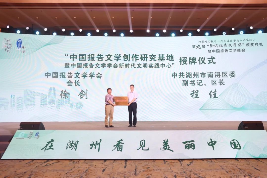 7月1日晚,第九屆“徐遲報(bào)告文學(xué)獎(jiǎng)”頒獎(jiǎng)典禮暨中國(guó)報(bào)告文學(xué)峰會(huì)在浙江湖州市南潯區(qū)舉行。本次活動(dòng)以“向新時(shí)代報(bào)告——行走在綠水青山共富路上”為主題,來自中國(guó)報(bào)告文學(xué)學(xué)會(huì)、長(zhǎng)三角地區(qū)以及全國(guó)各地的80多位作家評(píng)論家齊聚一堂,共襄文學(xué)盛宴。中國(guó)作家協(xié)會(huì)黨組成員、副主席吳義勤出席活動(dòng)并講話。中國(guó)報(bào)告文學(xué)學(xué)會(huì)會(huì)長(zhǎng)徐劍,中國(guó)報(bào)告文學(xué)學(xué)會(huì)常務(wù)副會(huì)長(zhǎng)梁鴻鷹,湖州市政協(xié)副主席竺鸰,南潯區(qū)區(qū)委書記溫建飛分別致辭。浙江省作家協(xié)會(huì)黨組書記、副主席葉彤,南潯區(qū)領(lǐng)導(dǎo)程佳、翟海峰、王培華以及長(zhǎng)三角地區(qū)各省市作家協(xié)會(huì)相關(guān)負(fù)責(zé)人馬文運(yùn)、丁捷、余同友等出席。