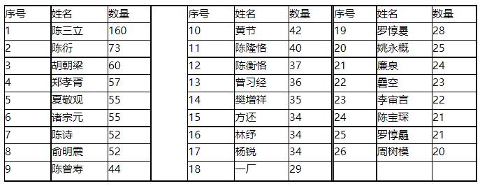天津《大公報(bào)》1916年1月至1921年4月副刊暫停,五年又四個(gè)月里,“文苑”共有380多位詩(shī)人發(fā)表詩(shī)歌3270馀題,達(dá)到或超過(guò)20題的有37位: